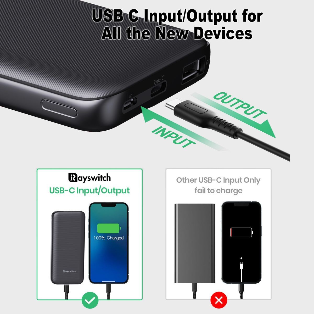 Built with superior durability and scratch resistance, Rayswitch RP120 is premium both inside and out, as one of the slimmest and lightest 10,000mAh portable chargers on the market it provides 2.25 charges for iPhone 14, 1.6 charges for Galaxy S20 and 1.2 charges for iPad mini 6.